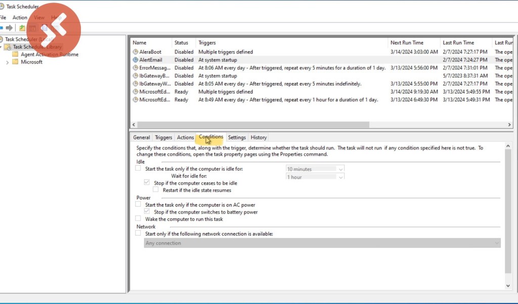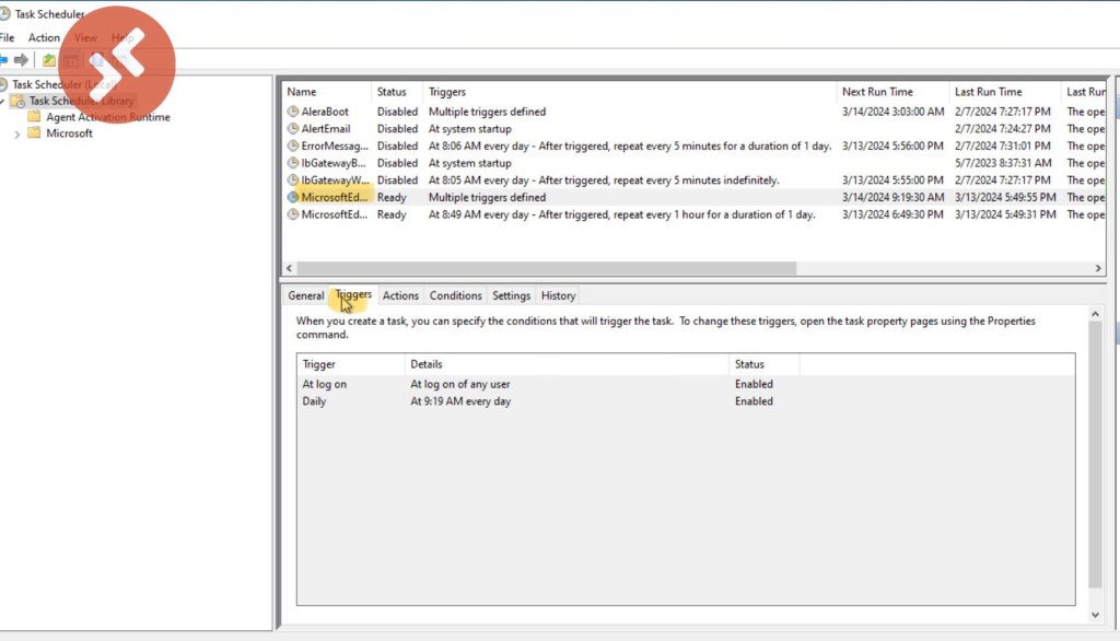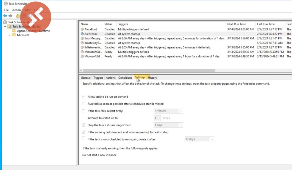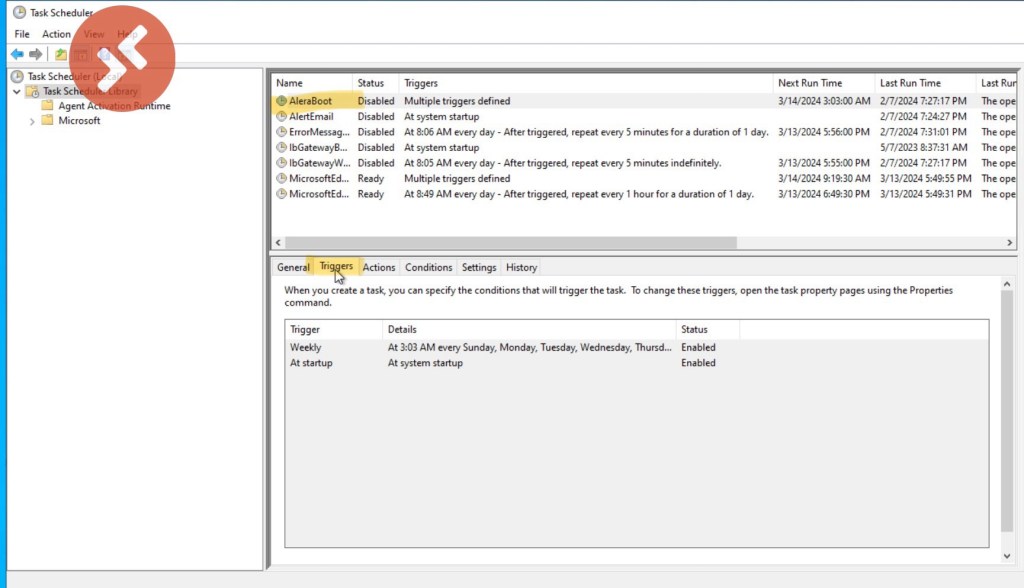 All settings and triggers for Windows Task Scheduler.